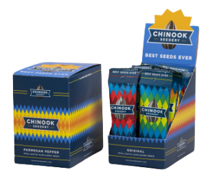 The Chinook Seedery 18-Count Sunflower Seed Retail-Ready Package features vivid color graphics and an eye-catching, die-cut header, which makes this package a stand-out retail display. An easy-open, clean-tear perforation within the carton structure was also added for easy product access. In addition, the carton is engineered to protect 18 bags of fragile product throughout the supply chain, and is strong enough, even with the perforation, to eliminate master cases.